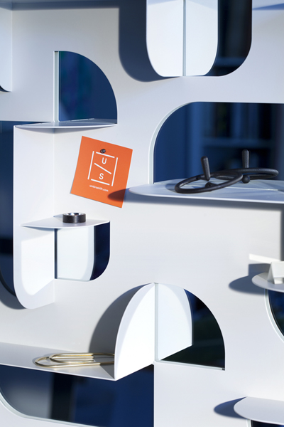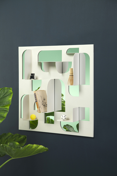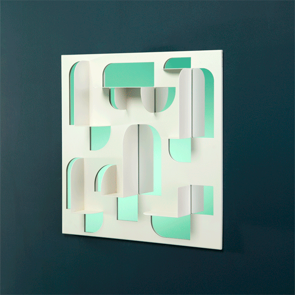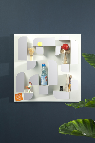 BEND is a sculptural display shelf and wall mirror designed for Umbra Shift. Curate your trinkets and accessories with its bent, powder coated steel shelves. Catch your reflection in its geometric cutout mirrors. Wall brackets allow the piece to be hung in four orientations, creating different shelf configurations.