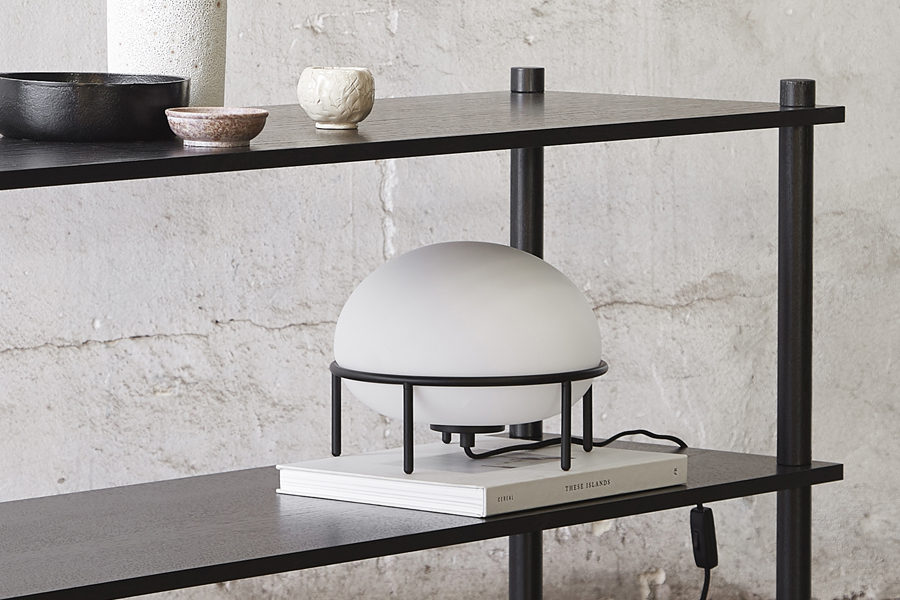 Inspired by hot air balloons and the idea of a luminaire lifting off the ground. Floating in the air. The light tubular steel structure symbolizes the propellant of a rocket, accentuating the effect of levitation of the shade. With its soft opal glass, PUMP is ideal for smaller spots and set ups where a pleasant light is needed. Whether that be on the desk, in the shelving system or on the window ledge.
