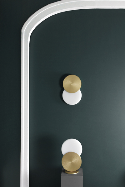 DUO is available in two colors (brass and black coated steel) and 3 typologies: wall lamp, suspension et table lamp.