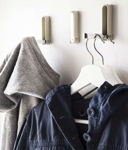With this foldable hook you can easily transform a small area by the entrance or in the bedroom into a smart storage space for jackets, bags or other things you want to have close at hand.