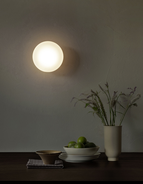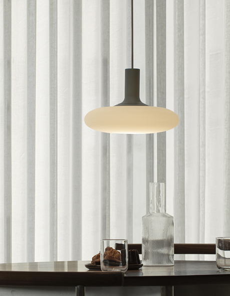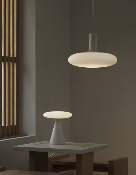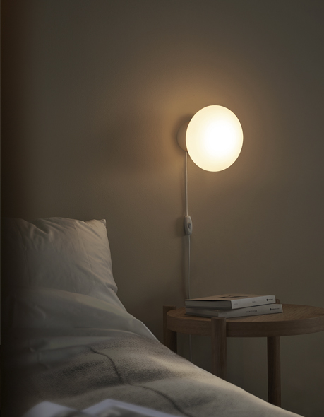 The light comes in three versions and two sizes: wall sconce, table lamp and pendant lamp.