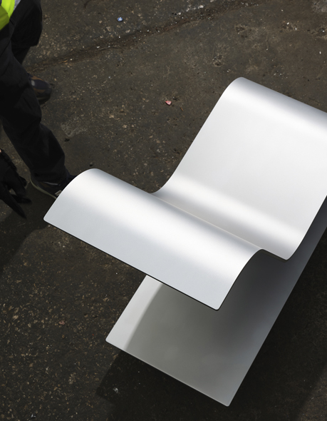 The MINUS chair is made of a bent 10mm aluminum sheet, without any welding, additional elements or ornament, just raw aluminum.
